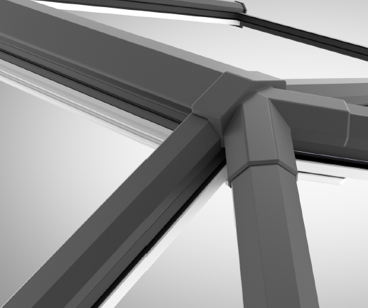 Fixed at 20˚ pitch this allows the system to use the incredibly discreet purpose designed top caps and internal covers, without unsightly gaps to rafter ends.
