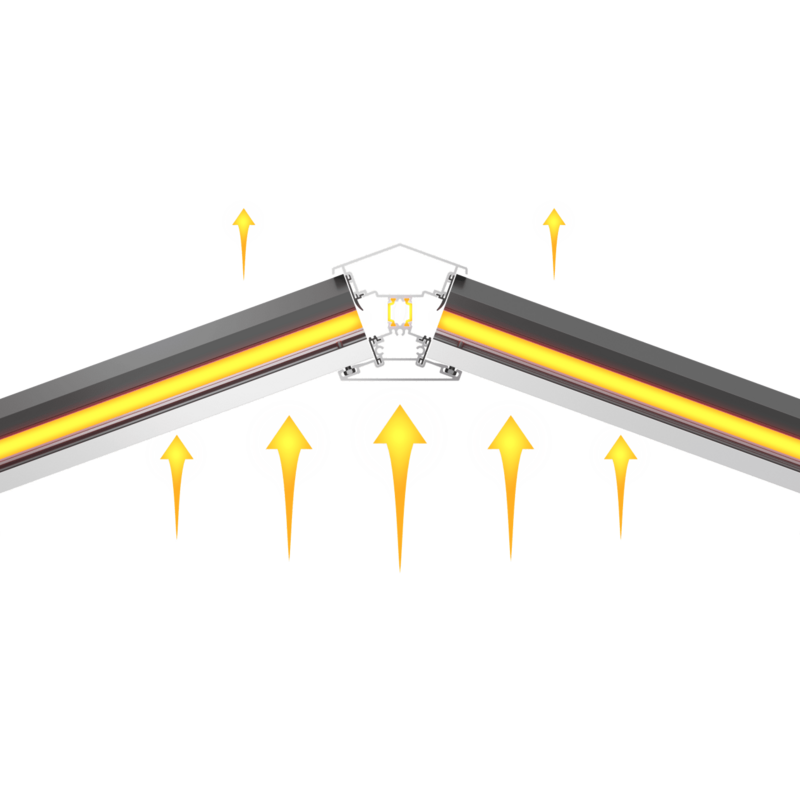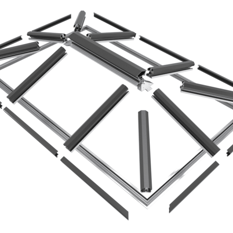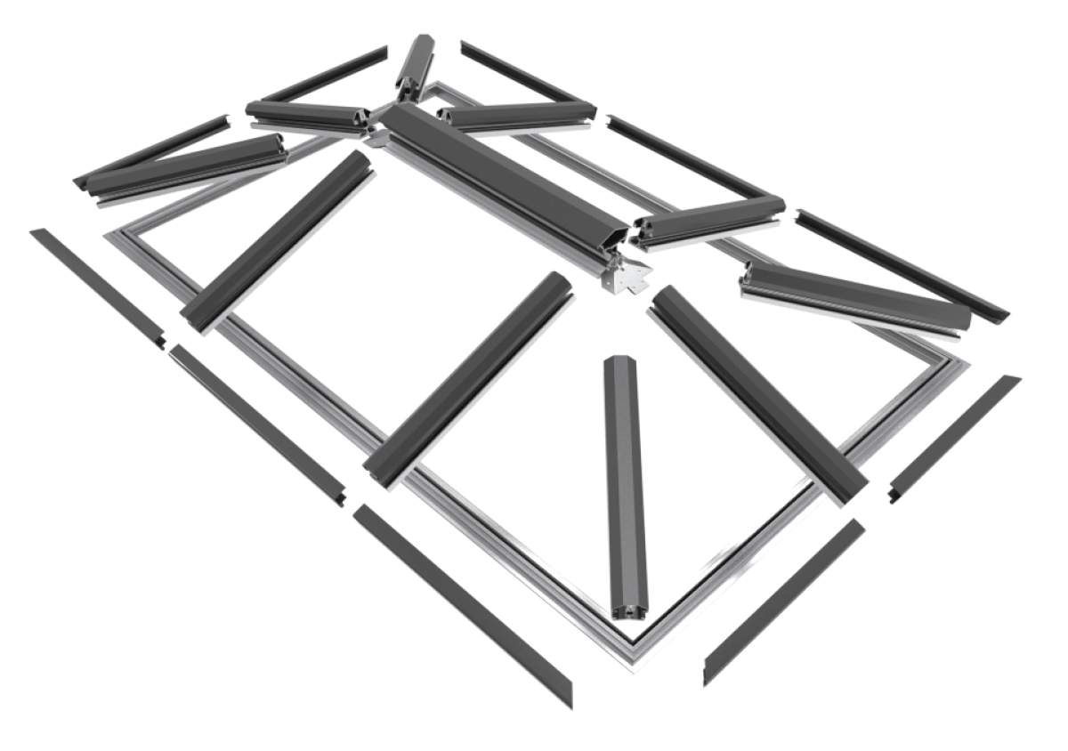 Fixed at 20˚ pitch this allows the system to use the incredibly discreet purpose designed top caps and internal covers, without unsightly gaps to rafter ends.